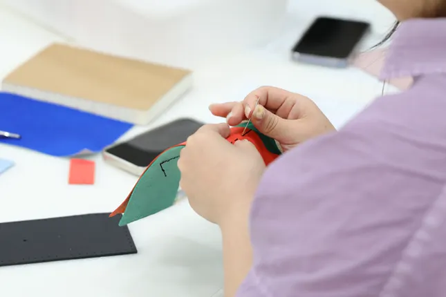전개 | 자투리 가죽으로 만든 다이어리 재단물을 바느질로 조립하여 완성하는 업사이클링 체험 진행 |