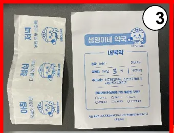 ■ 작업과정 : 약 포지 내 간식 담기(멘토스, 초코바 등) – 약 봉투에 삽입